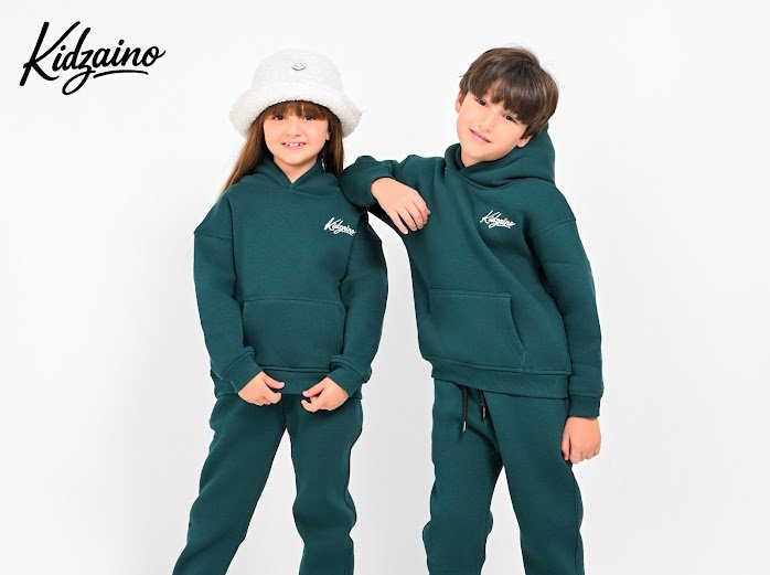 a.Unisex-Hunter Green Fleece Lined Kids Hoodie and Jogger Set